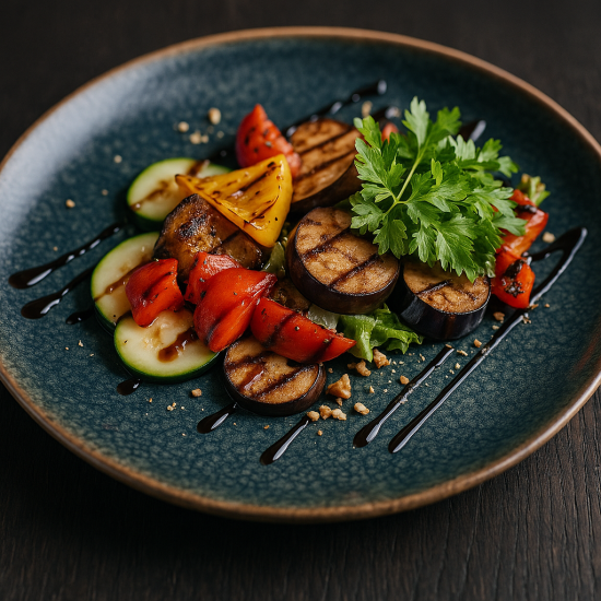 Салат из запеченных овощей с грецким орехом