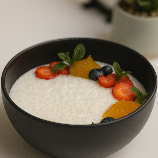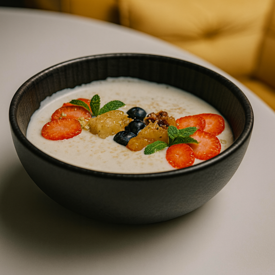 Нежная каша из киноа на молоке с мёдом и свежими ягодами