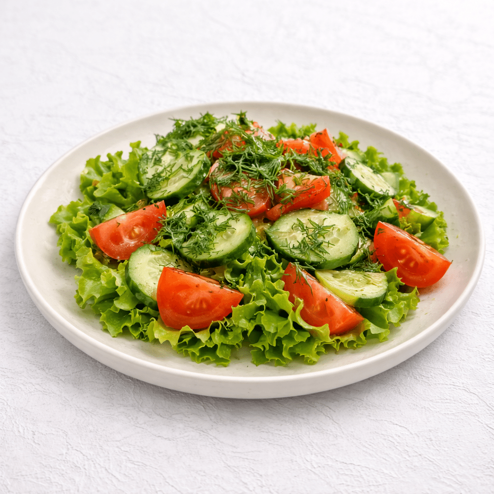 Свежий огурец, помидор, болгарский перец, петрушка/укроп, заправка